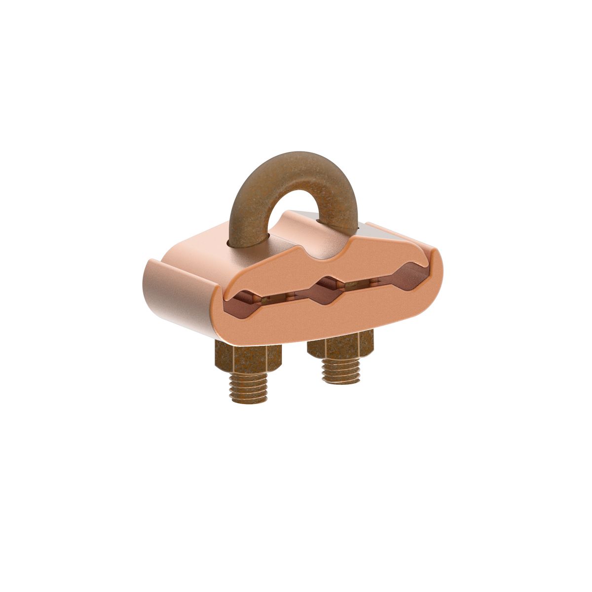 Abrazadera mecánica de varilla de tierra, para cable a varilla, alta resistencia, 8 AWG (sol.) – 1/0 AWG (str.), varilla de tierra de 3/4″, espárrago de 3/8″.