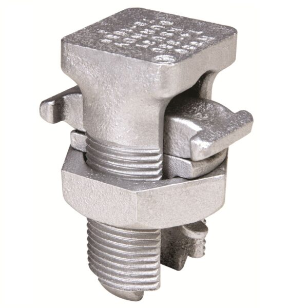 Abrazadera mecánica de varilla de tierra, para cable a varilla, alta resistencia, 8 AWG (sol.) – 1/0 AWG (str.), varilla de tierra de 3/4″, espárrago de 3/8″.