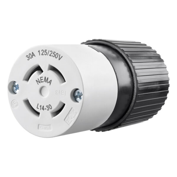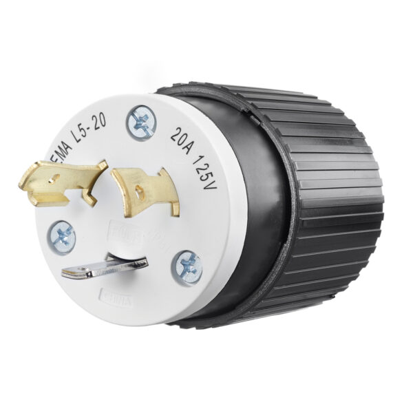 Dispositivos de bloqueo, industrial, enchufe macho de nylon, 20A trifásico delta 250V CA, 3 polos 4 hilos con conexión a tierra, L15-20P, terminal de tornillo, negro y blanco.