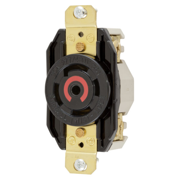 Dispositivos de bloqueo, Twist-Lock®, estanco Safety-Shroud®, enchufe macho, 20A trifásico en estrella 120/208V CA, 4 polos 5 hilos con toma de tierra, NEMA L21-20P, terminal de tornillo, carcasa PBT negra, abrazaderas PBT blancas.
