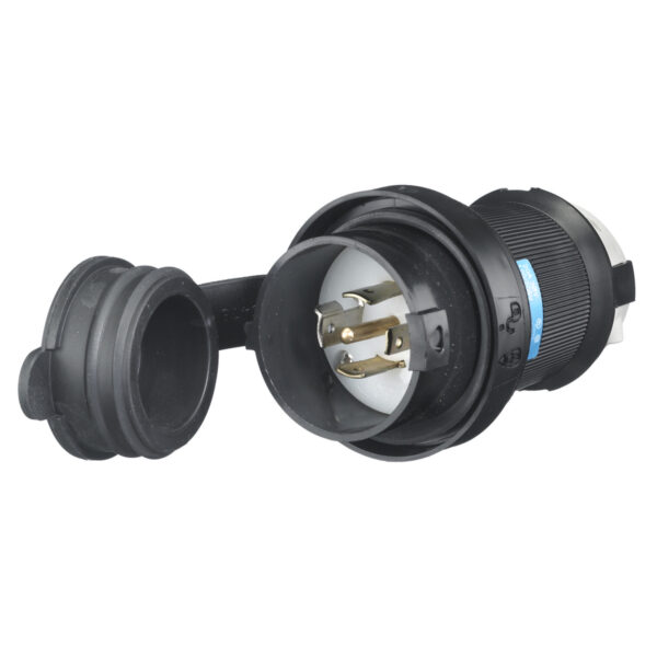 Dispositivos de bloqueo, Twist-Lock®, Industrial, Receptáculo empotrado, 30A trifásico en estrella 277/480V CA, 4 polos, 5 hilos con toma de tierra, L22-30R, terminal de tornillo, negro.